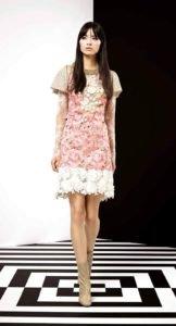 Babydoll dress made of white and pink pastel silk guipure
